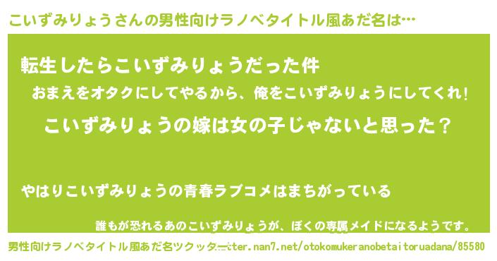 | ヒーロー風カッコイイあだ名 | 『幻影騎士コイ』『ネオコイズミリョウ』 |