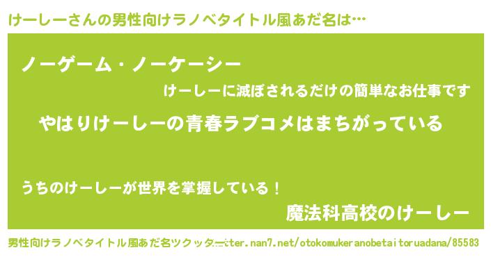 けーしーさんの男性向けラノベタイトル風あだ名をツクッター!