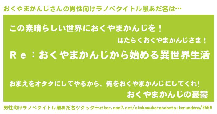 | 女子向けラノベタイトル風あだ名 | 『おくやまかんじストレイドッグス』 |
