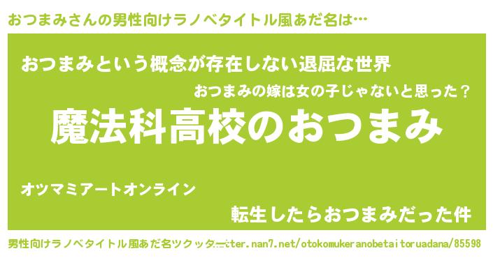 | 女子向けラノベタイトル風あだ名 | 『おつまみなんてお断りですっ。』 |