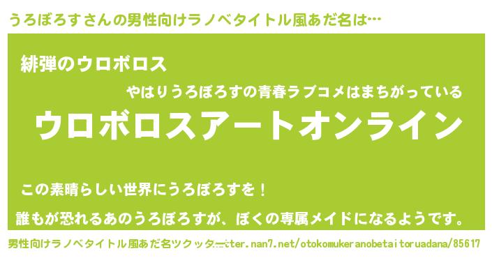 | 女子向けラノベタイトル風あだ名 | 『誰かこのうろぼろすを説明してください! ~契約から始まるウェディング~』 |