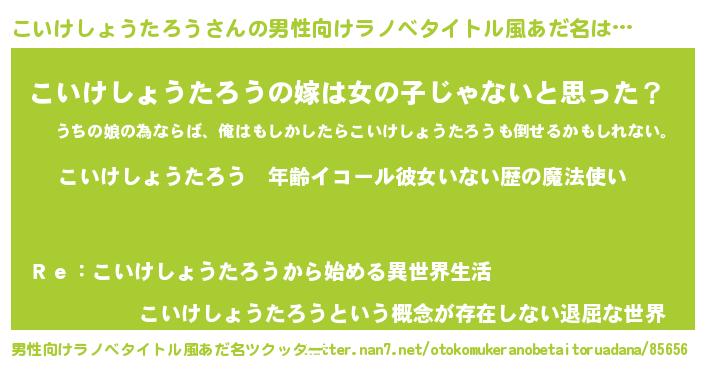 | 女子向けラノベタイトル風あだ名 | 『こいけしょうたろうの玉の輿計画!』 |
