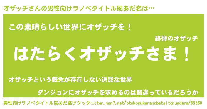 | 意味不明あだ名 | 『住所不定無職オザッチ(56歳)』 |