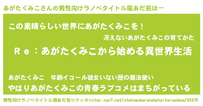 | 意味不明あだ名 | 『自称あがたくみこ』 |