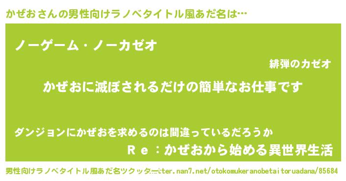 | ヒーロー風カッコイイあだ名 | 『天空の使者かぜお』『究極戦士カゼオ』 |
