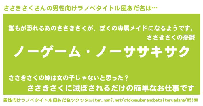 | 女子向けラノベタイトル風あだ名 | 『ささきさく恋絵巻』 |