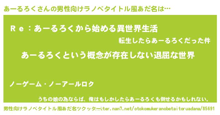 | 伝説のあだ名 | 『古より伝わる勇者あーるろく』 |