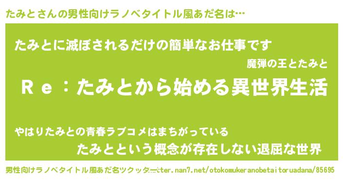女子向けラノベタイトル風あだ名 | 『たみとストレイドッグス』 |
