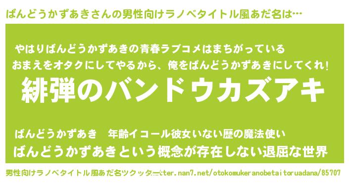 | 小説 | 最初の1行『ばんどうかずあき「真夜中は、なぜこんなにもきれいなんだろうと思う。」』 |