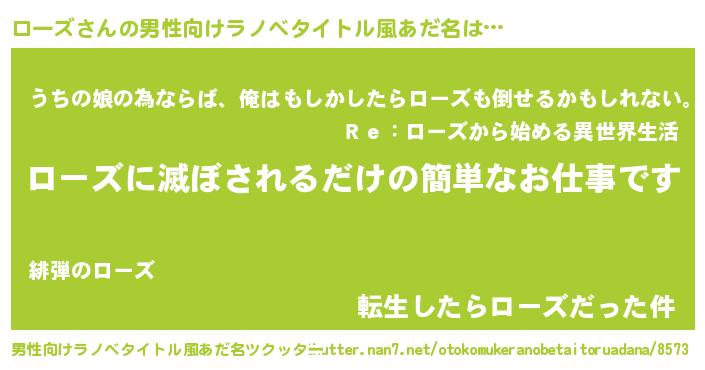| 女子向けラノベタイトル風あだ名 | 『横柄ローズと宰相陛下』『闇のローズ』 |