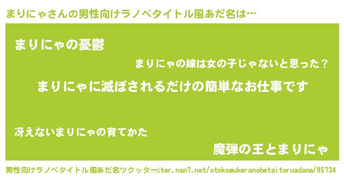 | 胡散臭い通販商品みたいなあだ名 | 『億万長者になれるブレスレット…その名も「まりにゃ」』 |
