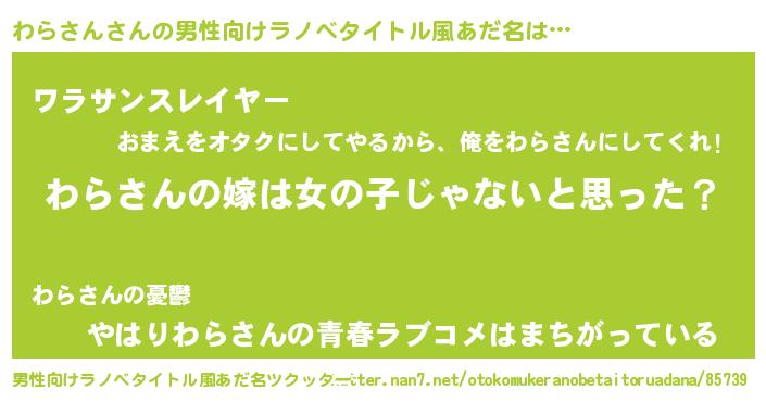 | 胡散臭い通販商品みたいなあだ名 | 『伝統あるサプリメント…その名も「わらさん」』 |