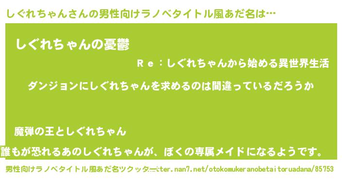 | 女子向けラノベタイトル風あだ名 | 『しぐれちゃんは平凡を望む』 |