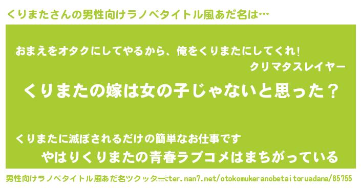 | 女子向けラノベタイトル風あだ名 | 『くりまた様がみてる』『くりまた恋絵巻』 |