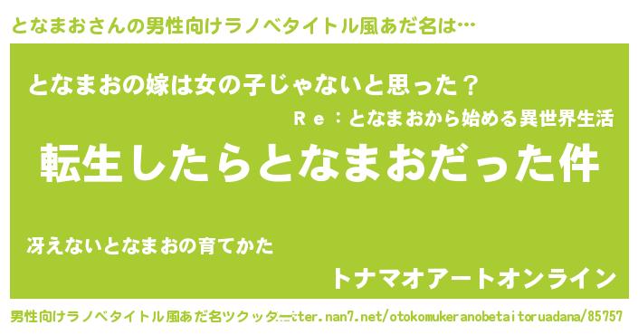 となまおさんの男性向けラノベタイトル風あだ名をツクッター!