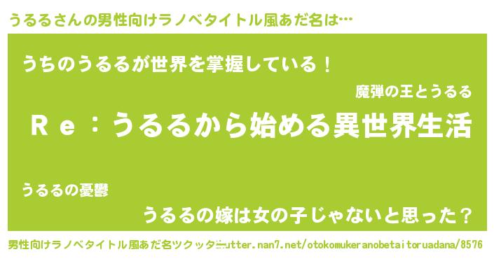 | ヒーロー風カッコイイあだ名 | 『究極戦士ウルル』『天弓騎士ウル』 |