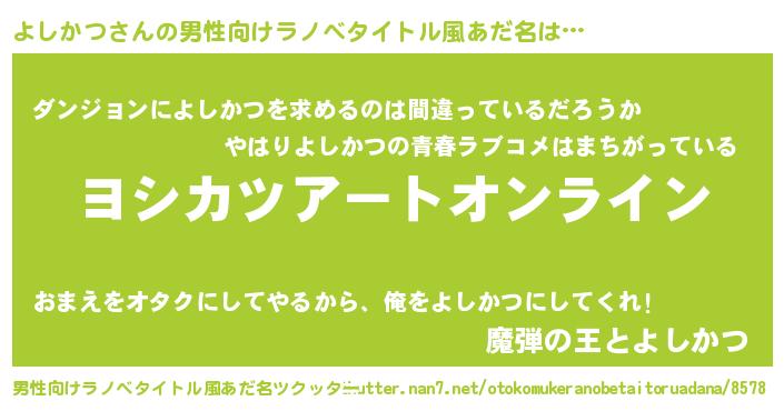 | ヒーロー風カッコイイあだ名 | 『スーパーヨシカツ』『魔戒騎士ヨシ』 |