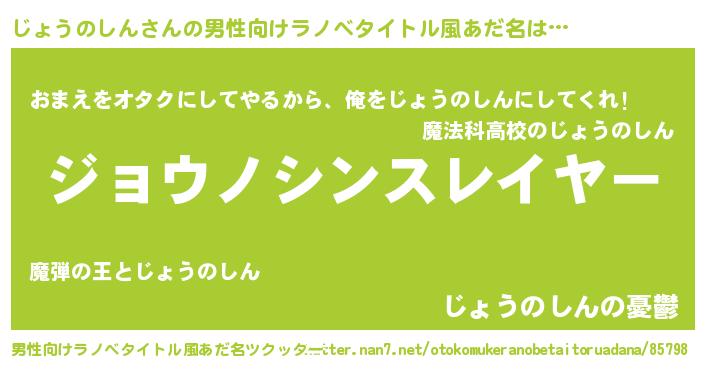 | 胡散臭い通販商品みたいなあだ名 | 『100人中100人が認めたマグネット磁石…その名も「じょうのしん」』 |