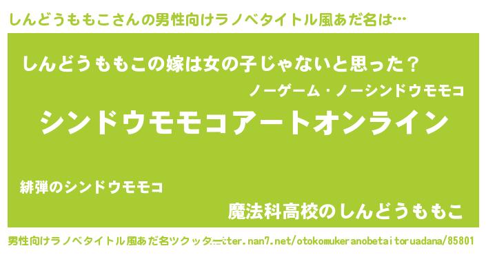 | 女子向けラノベタイトル風あだ名 | 『誰かこのしんどうももこを説明してください! ~契約から始まるウェディング~』 |