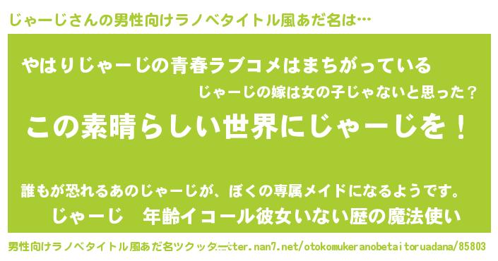 | 意味不明あだ名 | 『住所不定無職じゃーじ(5歳)』 |