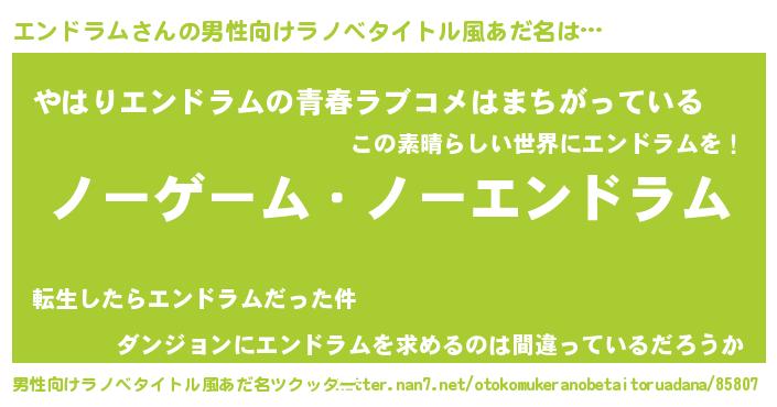 | 女子向けラノベタイトル風あだ名 | 『死神エンドラムの再婚』 |
