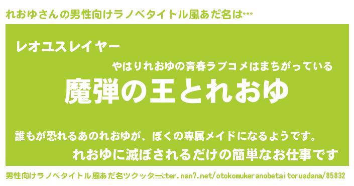 | 女子向けラノベタイトル風あだ名 | 『乙女ゲームの破滅フラグしかない悪役れおゆに転生してしまった…』 |
