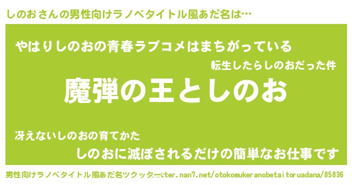 | ヒーロー風カッコイイあだ名 | 『仮面シノダー』『ウルトラしのおマン』 |