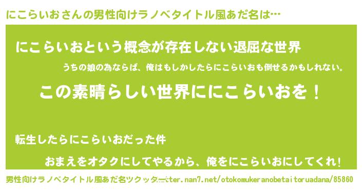 | 意味不明あだ名 | 『住所不定無職にこらいお(7歳)』 |