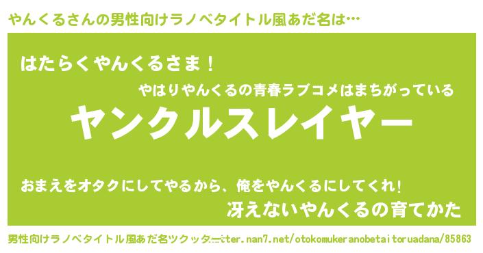 | 胡散臭い通販商品みたいなあだ名 | 『幸せが訪れる高級そうな壺…その名も「やんくる」』 |