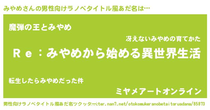 | 意味不明あだ名 | 『自称みやめ』『住所不定無職みやめ(14歳)』 |