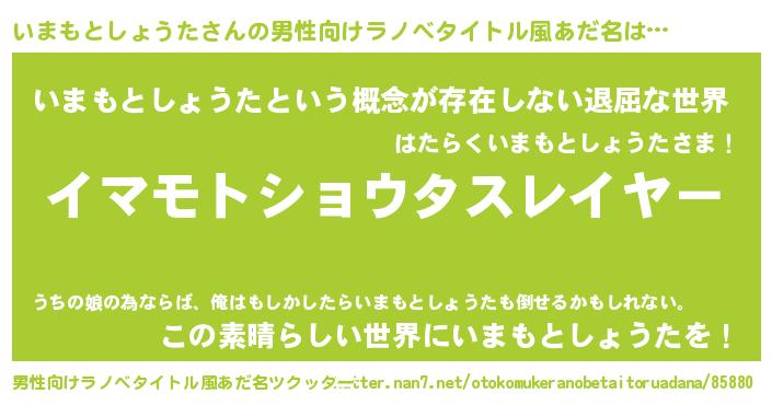 | 胡散臭い通販商品みたいなあだ名 | 『絶対に幸福をもたらす健康食品…その名も「いまもとしょうた」』 |