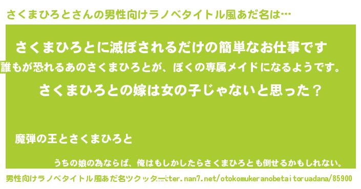 | 胡散臭い通販商品みたいなあだ名 | 『全米が絶賛したサプリメント…その名も「さくまひろと」』 |