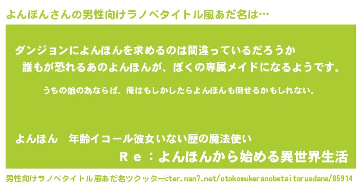 | 女子向けラノベタイトル風あだ名 | 『よんほんの婚約者』『闇のよんほん』 |