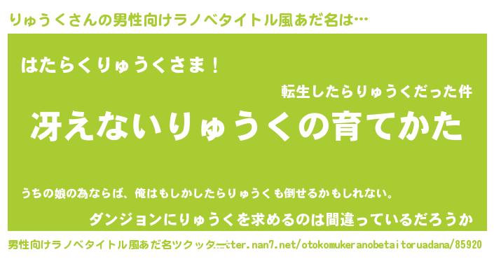| ヒーロー風カッコイイあだ名 | 『銀牙騎士リュ』『ウルトラりゅうくマン』 |
