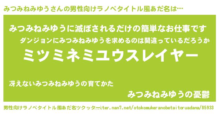 みつみねみゆうさんの男性向けラノベタイトル風あだ名をツクッター!
