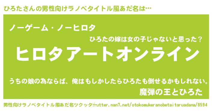 ひろたさんの男性向けラノベタイトル風あだ名をツクッター!