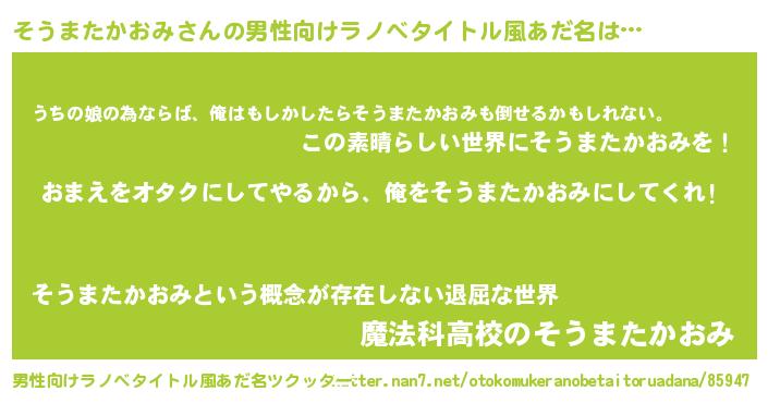 | ヒーロー風カッコイイあだ名 | 『正義の使者そうまたかおみ』 |