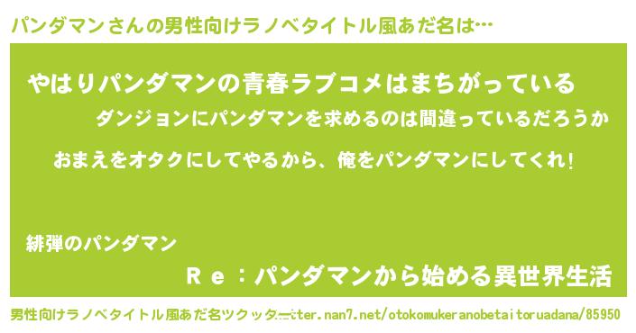 | ヒーロー風カッコイイあだ名 | 『友情の使者パンダマン』『魔戒騎士パン』 |