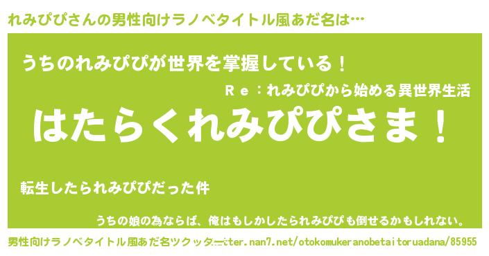 | ヒーロー風カッコイイあだ名 | 『ウルトラれみぴぴマン』『ネオレミピピ』 |