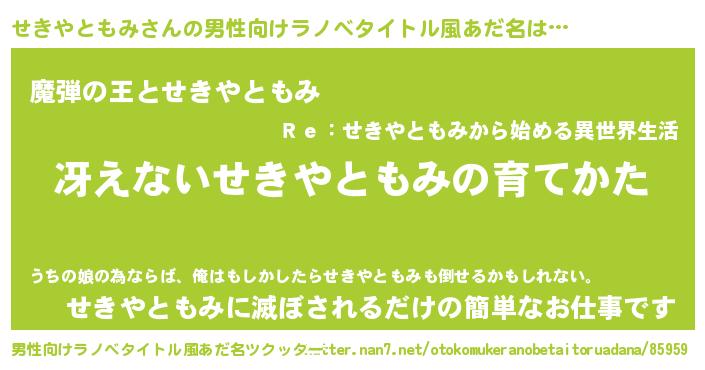 | 意味不明あだ名 | 『住所不定無職せきやともみ(3歳)』 |