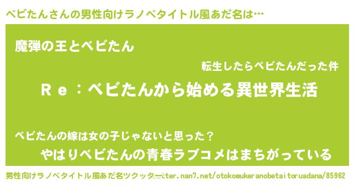 | 女子向けラノベタイトル風あだ名 | 『闇のベビたん』『ベビたんの雑貨屋さん』 |