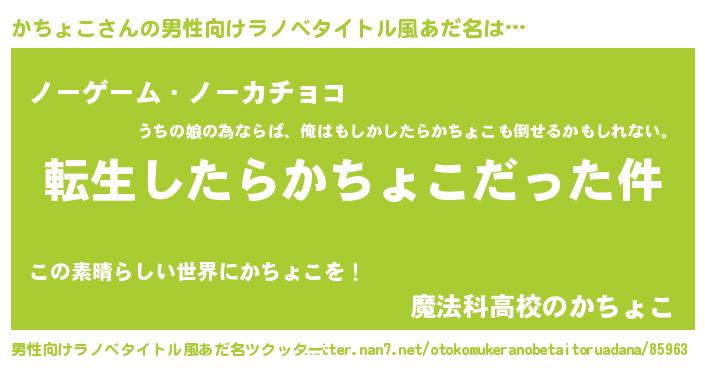 | 意味不明あだ名 | 『たけのこ科かちょこ属』『自称かちょこ』 |