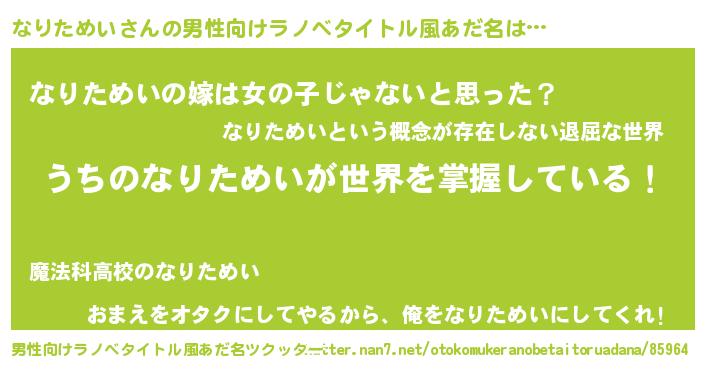 | ヒーロー風カッコイイあだ名 | 『炎刃騎士ナリ』『愛の使者なりためい』 |