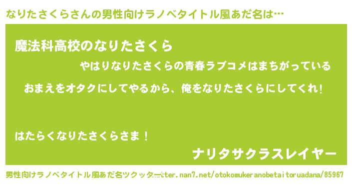 なりたさくらさんの男性向けラノベタイトル風あだ名をツクッター!