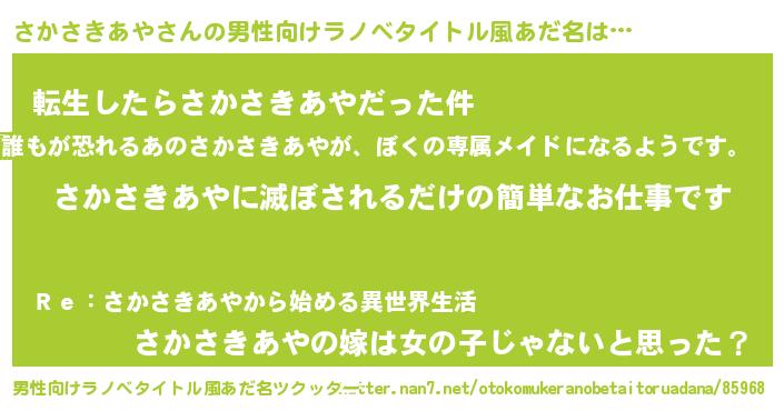 | ヒーロー風カッコイイあだ名 | 『幻影騎士サカ』『ネオサカサキアヤ』 |