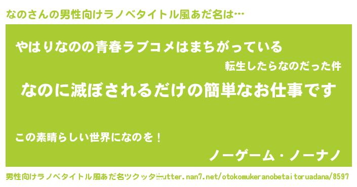 | 女子向けラノベタイトル風あだ名 | 『横柄なのと宰相陛下』『なの恋絵巻』 |