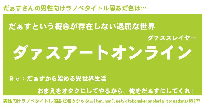 | ヘコむあだ名 | 『だぁっふぃ~』『だぁす(爆)』 |