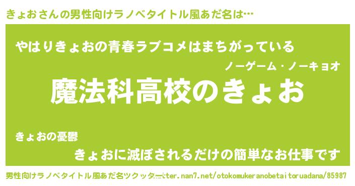 | 意味不明あだ名 | 『自称きょお』『きょおフォーエバー』 |