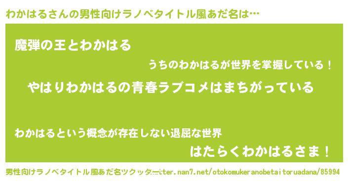 | ヒーロー風カッコイイあだ名 | 『ウルトラわかはるマン』『仮面ワカダー』 |