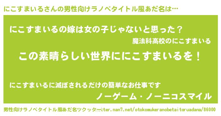 にこすまいるさんの男性向けラノベタイトル風あだ名をツクッター!